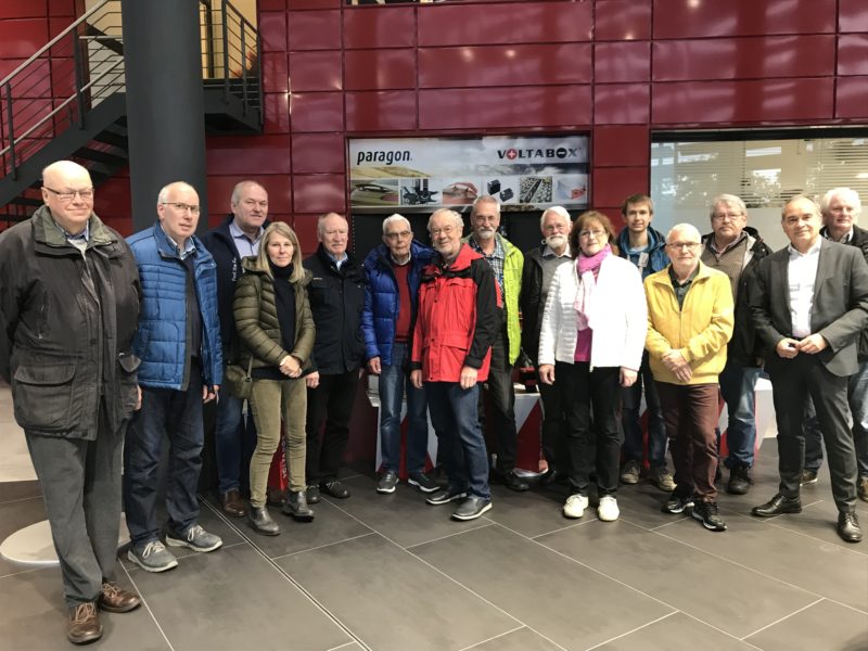 Unter Strom: unser Besuch bei Voltabox 11. November 201911. November 2019 Zusammen mit interessierten Verler Bürgerinnen und Bürgern besuchte der Ortsverband Bündnis90/Die Grünen das Unternehmen Voltabox in Delbrück. Herr Pampel, Vorstandsvorsitzender der Voltabox AG, gab einen Überblick über das Unternehmen und erklärte die vielfältigen Produkte und das dafür erforderliche Know-How. Es wurde deutlich, dass Voltabox hochmoderne Batteriemanagementsysteme für beispielsweise Elektrobusse, Landmaschinen und schwere Bau- und Bergbaumaschinen selber entwickelt. Zellchemie, Bauform und andere Faktoren werden jeweils auf den Einsatzbereich der Batterie abgestimmt. Bei der Produktion werden nicht nur Akkus verbaut, sondern auch elektronische Steuerungen, die die einzelnen Batteriezellen überwachen. Somit ist es möglich den Ladezustand der Batterie zu kontrollieren und auch den Ladestrom optimal zu steuern. Am Ende der Veranstaltung waren alle Besucher sehr beeindruckt von den Informationen und Eindrücken, die auch während der Betriebsbesichtigung gewonnen werden konnten. Die Verler Grünen können auf die gewonnenen Erkenntnisse zukünftig bei ihren politischen Planungen zur Elektromobilität zurückgreifen. Abschließend bedankten sich die Teilnehmer für die vielschichtigen Informationen und eine perfekte Organisation. Die Besuchergruppe bei Voltabox