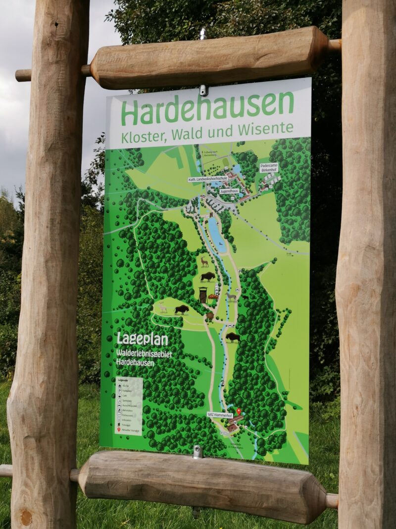 Wald, Wiesen und Wisente: ein Ausflug zum Hammerhof 9. Oktober 20239. Oktober 2023 Am 30.September haben die Verler Grünen zu einem Ausflug zum Waldinformationszentrum Hammerhof eingeladen. Bei bestem Wetter starteten 18 Interessierte im Kleinbus von Verl nach Hardehausen. Das vom Land NRW betriebene Bildungszentrum hat eine Wisentherde, die in einem 170 ha großen Wald- und Wiesenstück halb wild lebt. Sehr anschaulich hat der Förster uns durch das liebliche Hammerbachtal geführt und uns kritisch über Pflanzen- und Tierwelt informiert. Um die Wisente vor dem Aussterben zu bewahren, gründete sich 1923 eine Initiative, die inzwischen europaweit zusammenarbeitet und wieder größere Wisentherden hervorgebracht hat. Nach einer gemeinsamen Mahlzeit und weiteren Informationen zu Wölfen und zum Naturpark Egge machten wir uns gestärkt auf den Rückweg nach Verl. Die vielen Eindrücke haben alle Teilnehmerinnen und Teilnehmer noch einmal für die Wichtigkeit des Erhalts biologischer Vielfalt und unberührter Natur sensibilisiert. Wer bei zukünftigen Veranstaltungen oder Ausflügen dabei sein möchte, ist herzlich willkommen und findet die aktuellen Termine auf unserer Website.